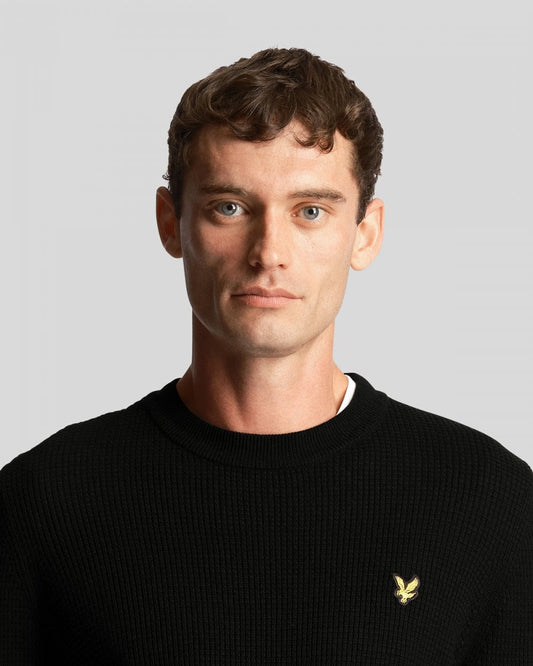 Vendor:Lyle & Scott Ribbed Jacquard Tartan Crew Neck - Z865 Jet Black - Z865 Jet BlackLyle & Scott