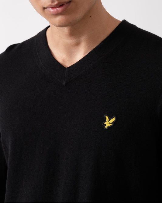 Cotton Merino Mens V-Neck Jumper - Z865 Jet Black