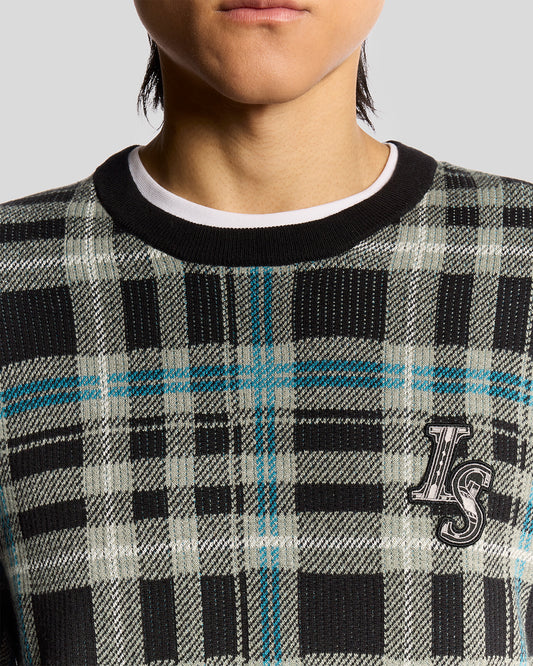 Ribbed Jacquard Tartan Crew Neck - Z865 Jet Black