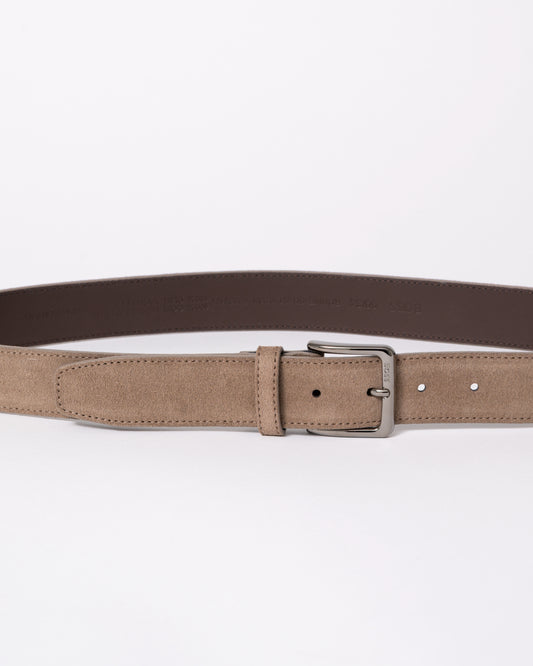 Ronnie Mens Suede Belt with Logo-Engraved Gunmetal Buckle - Medium Beige 261