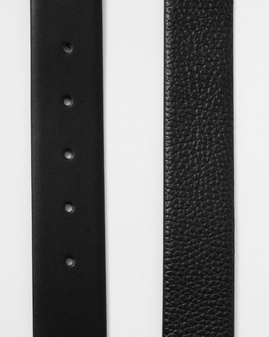 Gellot Mens Grained-Leather Belt with Logo Engraved Buckle - Black 001