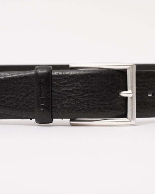 Mens Leather Belt with Signature Stripe Keeper - 79 Black