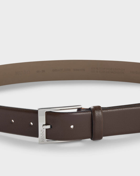 Vendor:HUGO Gellot Mens Grained-Leather Belt with Logo Engraved Buckle - Dark Brown 202 - Dark Brown 202HUGO