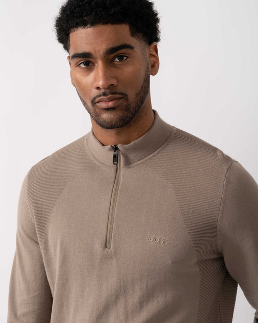 Vendor:BOSS Green Momentum-Lite Mens 1/4 Zip Funnel Neck Jumper - Light/Pastel Green 334 - Light/Pastel Green 334BOSS Green