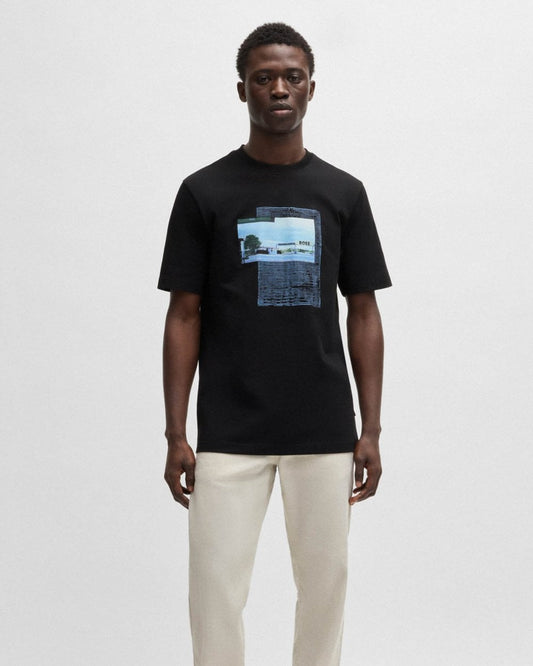 Vendor:BOSS Green Tee Mens Interlock-Cotton T-Shirt with Circle Artwork - Black 001 - Black 001BOSS Green Tee Mens Interlock-Cotton T-Shirt with Circle Artwork - Open Green 357 - Open Green 357BOSS Green