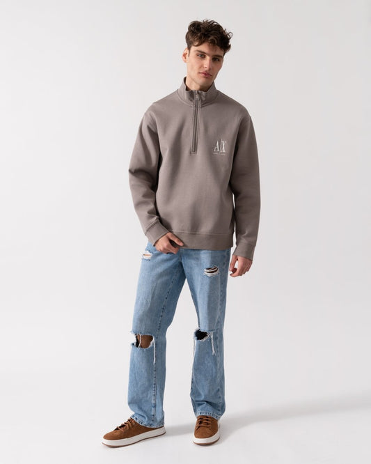 Mens Embroidered A|X Logo 1/4 Zip Sweatshirt - Driftwood U6107