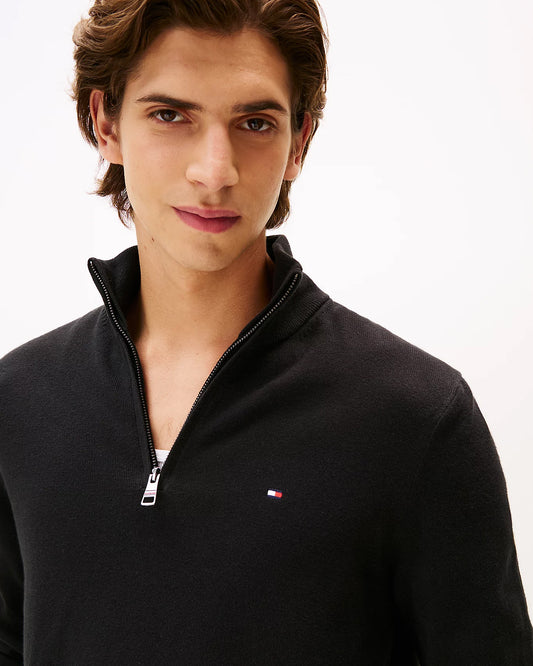 Organic Cotton Cashmere Mens Zip-Mock Sweater - Black