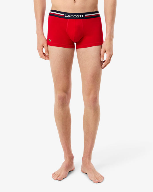 3-Pack Tricolour Waist Stretch Cotton Mens Trunks - Navy Blue/Silver Chine-Red W34