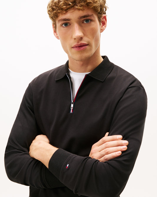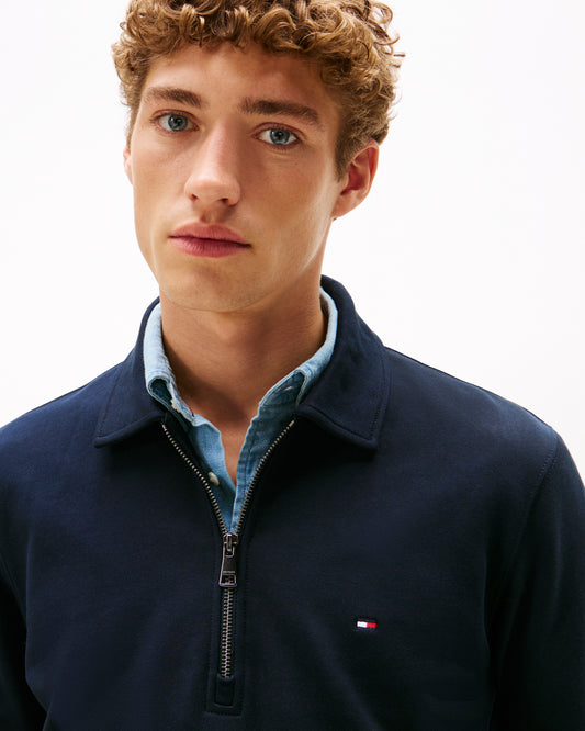 Essential Terry Long Sleeve Mens Zip Polo - Desert Sky