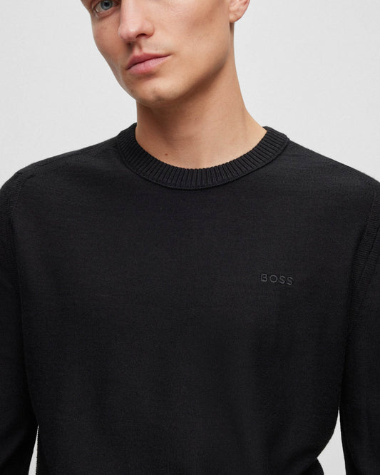 Avac C Mens Wool Blend Regular Fit Sweater with Embroidered Logo - Black 001