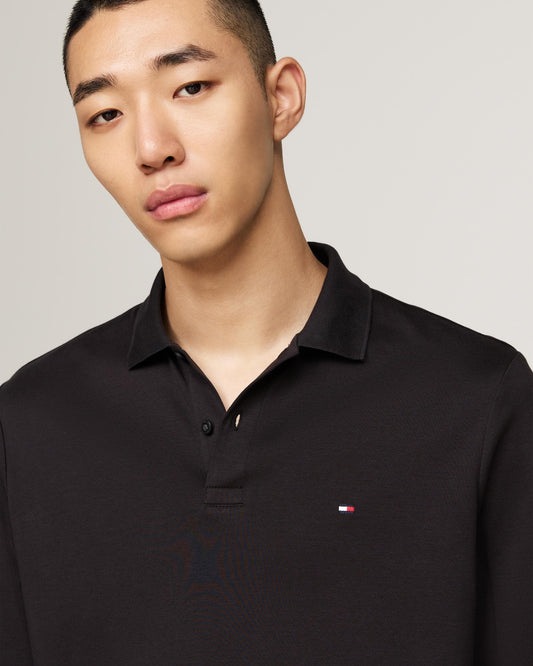 Liquid Cotton Mens Long Sleeve Polo - Black