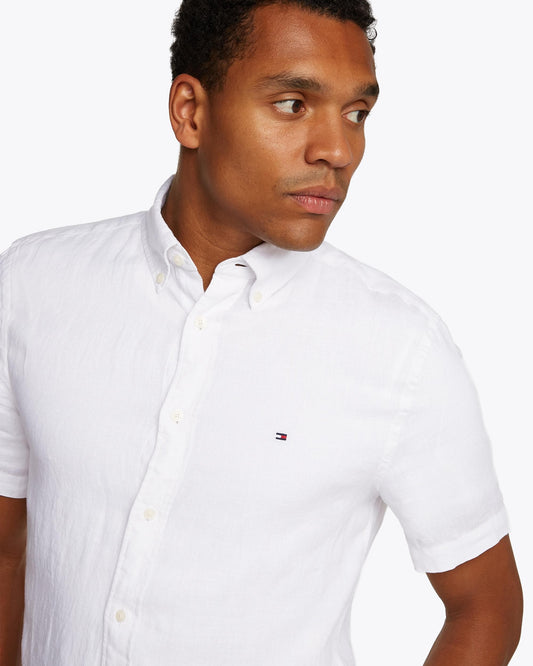 Pigment Dyed Linen Short Sleeve Mens Shirt - Optic White