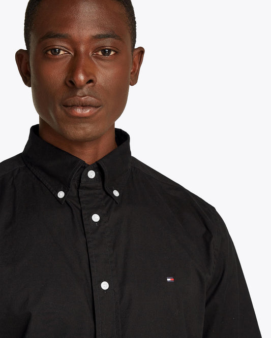 Vendor:Tommy Hilfiger Flex Poplin Solid Short Sleeve Mens Shirt - Black - BlackTommy Hilfiger