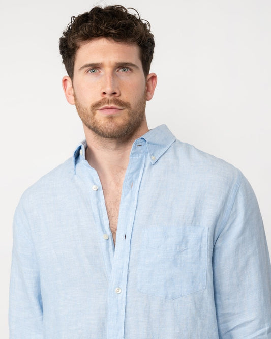 Mens Regular Linen Long Sleeve Shirt - 468 Capri Blue
