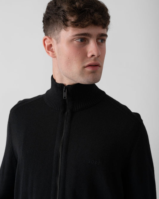 Avac Mens Full Zip Funnel Neck Jumper - Black 001