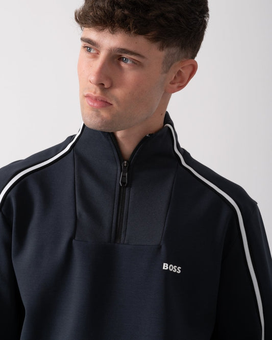 Vendor:BOSS Green Sweat 1 Mens 1/4 Zip Sweatshirt with Contrast Piping - Black 001 - Black 001BOSS Green