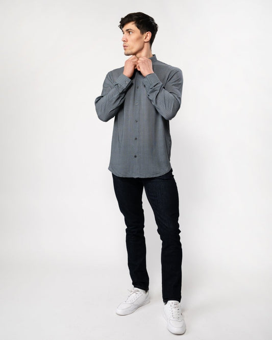 Mens Long Sleeve Pattern Print Shirt - Urban Chic Geometric Brick 7801