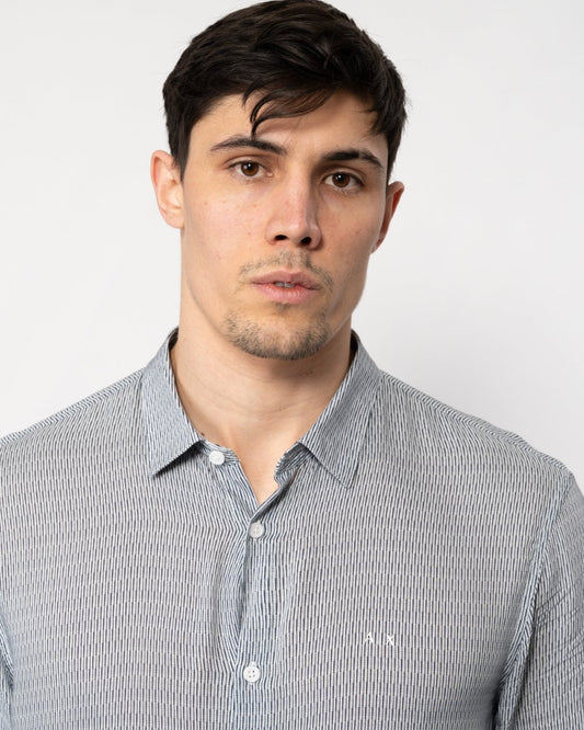 Vendor:Armani Exchange Mens Long Sleeve Pattern Print Shirt - W/Quarry Irregular Lines 71BA - W/Quarry Irregular Lines 71BAArmani Exchange