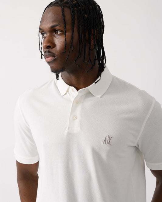 Mens Embroidered A|X Monogram Short Sleeve Polo Shirt - Off White U0009