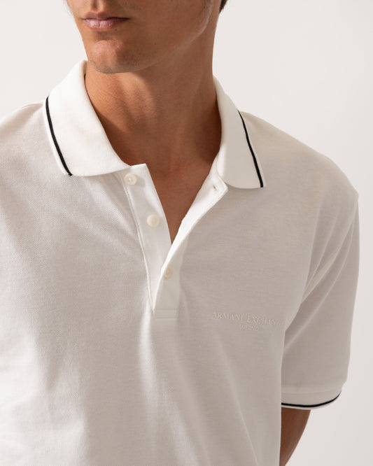 Vendor:Armani Exchange Mens Small Logo Pique Polo Shirt - White - WhiteArmani Exchange