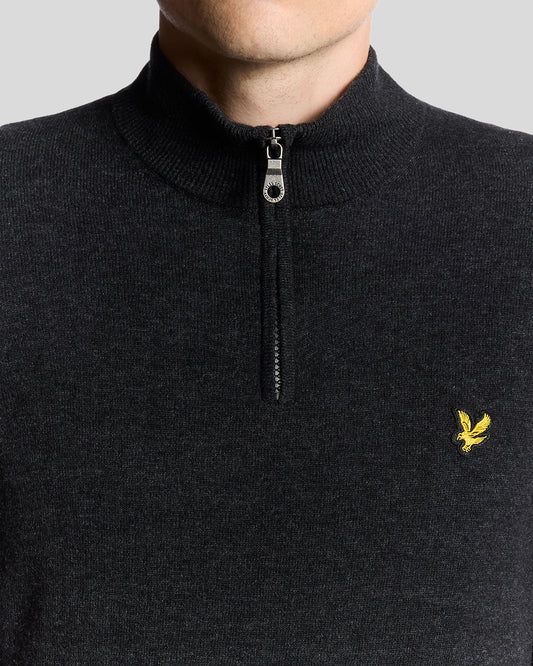 Lambswool Blend Quarter Zip Jumper - W155 Jet Black Marl