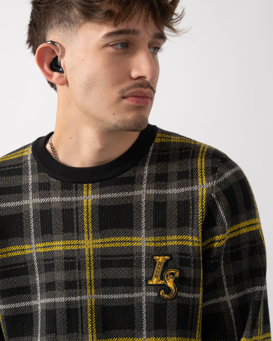 Ribbed Jacquard Tartan Crew Neck - Z865 Jet Black