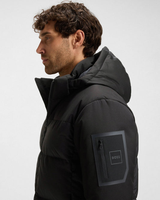 Block-X Mens Water-Repellent Down Jacket with Detachable Hood - Black 001