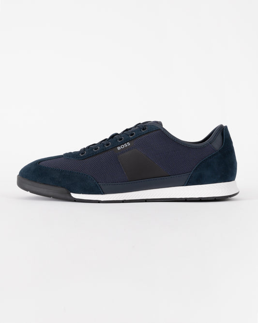 Vendor:BOSS Orange Zayn Mens Logo Trainers with Faux Suede Trims - Dark Blue 401 - Dark Blue 401BOSS Orange