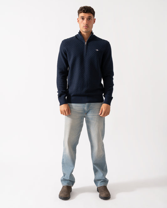 Mens Micro Texture Half Zip Jumper - 433 Evening Blue