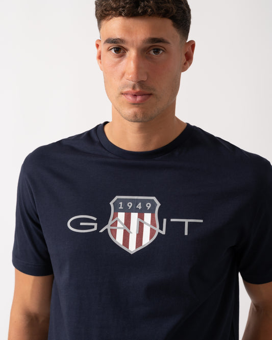 Vendor:GANT Mens Regular Fit Embroidered Archive Shield T-Shirt - 407 Rich Blue - 407 Rich BlueGANT