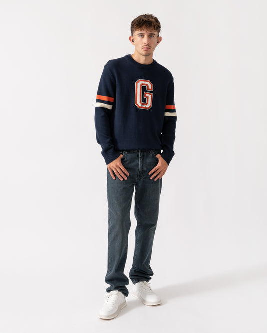 Mens Graphic Badge Crew Neck Jumper - 433 Evening Blue