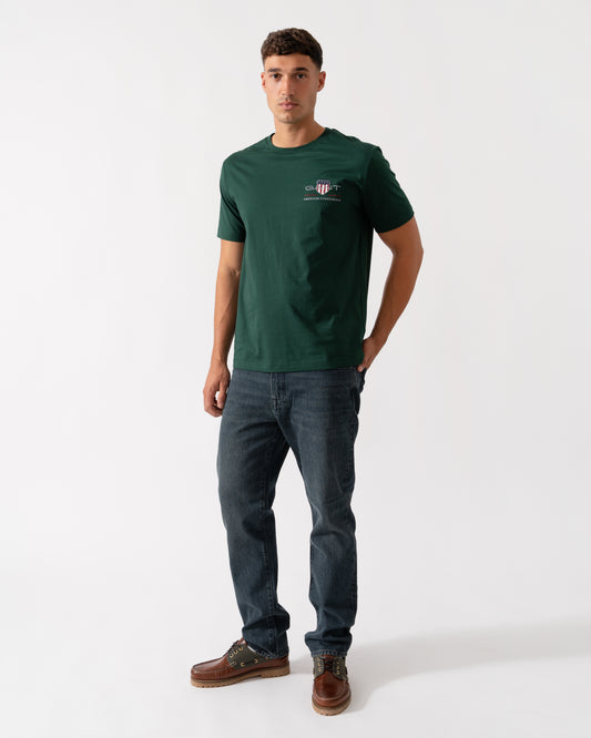 Vendor:GANT Mens Regular Fit Embroidered Archive Shield T-Shirt - 374 Tartan Green - 374 Tartan GreenGANT