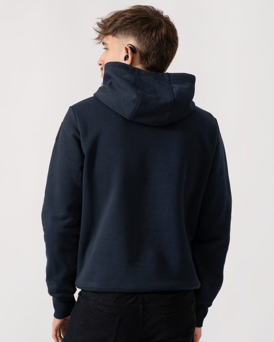 Mix&Match Mens Stretch-Cotton Zip-Up Hoodie with Embroidered Logo - Dark Blue 403