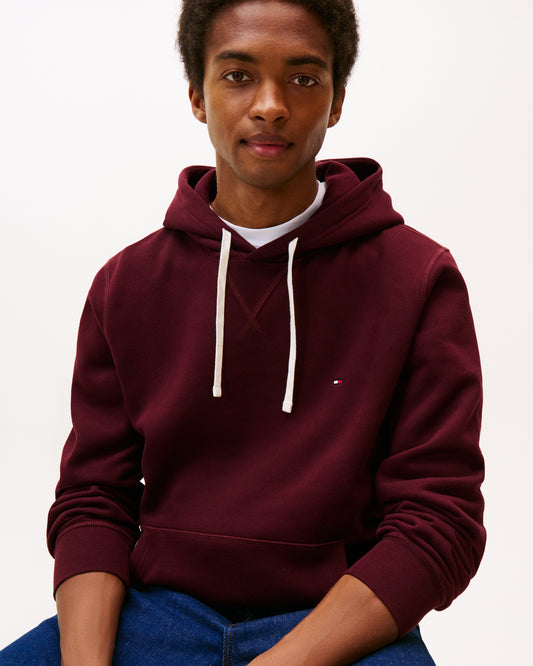 Essential Flag Embroidery Mens Fleece Hoodie - Deep Burgundy