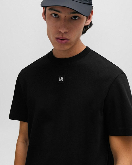 Dugolini Mens Cotton-Jersey T-Shirt with Embroidered Logo Artwork - Black 001
