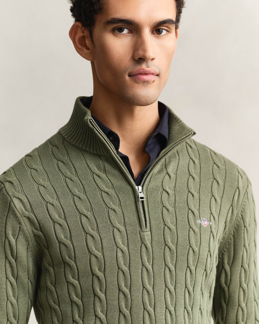 Vendor:GANT Mens Cotton Cable Half Zip Jumper - 677 Bordeaux Melange - 677 Bordeaux MelangeGANT Mens Cotton Cable Half Zip Jumper - 902 Dark Jeansblue Melange - 902 Dark Jeansblue MelangeGANT Mens Cotton Cable Half Zip Jumper - 130 Cream - 130 CreamGANT Mens Cotton Cable Half Zip Jumper - 433 Evening Blue - 433 Evening BlueGANT Mens Cotton Cable Half Zip Jumper - 93 Grey Melange - 93 Grey MelangeGANT Mens Cotton Cable Half Zip Jumper - 379 Dry Herb Green - 379 Dry Herb GreenGANT