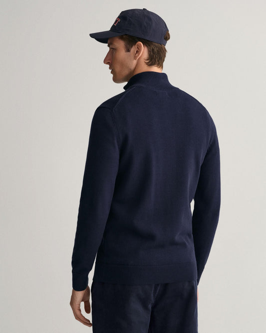 Vendor:GANT Mens Cotton Pique Half Zip Jumper - 433 Evening Blue - 433 Evening BlueGANT