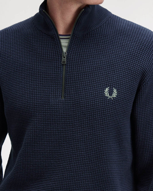 Mens Waffle Stitch Half Zip Jumper - Dark Airforce 738