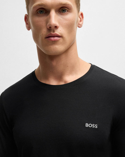Vendor:BOSS Orange Mix&Match Mens Long Sleeve Stretch-Cotton T-Shirt with Embroidered Logo - Black 001 - Black 001BOSS Orange