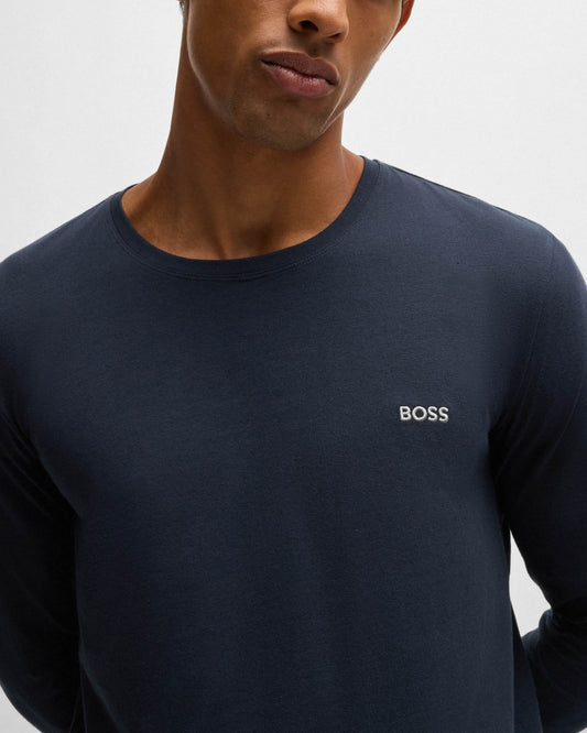 Vendor:BOSS Orange Mix&Match Mens Long Sleeve Stretch-Cotton T-Shirt with Embroidered Logo - Dark Blue 403 - Dark Blue 403BOSS Orange