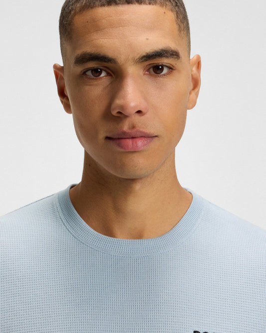 Waffle Mens Cotton-Blend Pyjama T-Shirt with Embroidered Logo - Open Blue 483