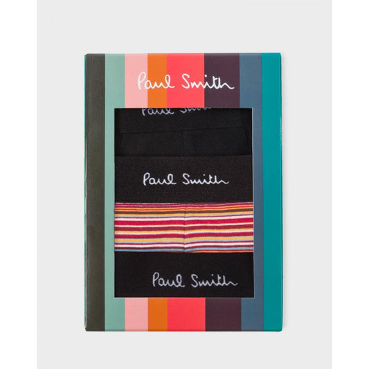 Mens Organic-Cotton Black/Mixed Stripe Boxer Briefs Three Pack - 79 Black