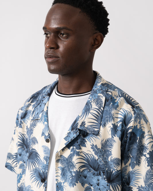 Mens Short Sleeve Floral Print Beach Shirt - Open Blue 483