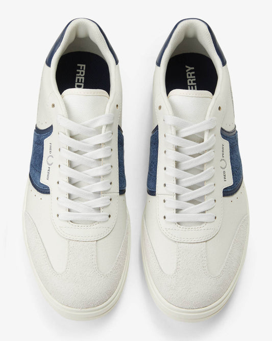 Vendor:Fred Perry Mens B4 Mens Textured Leather/Suede Trainers - Porcelain 254 - Porcelain 254Fred Perry