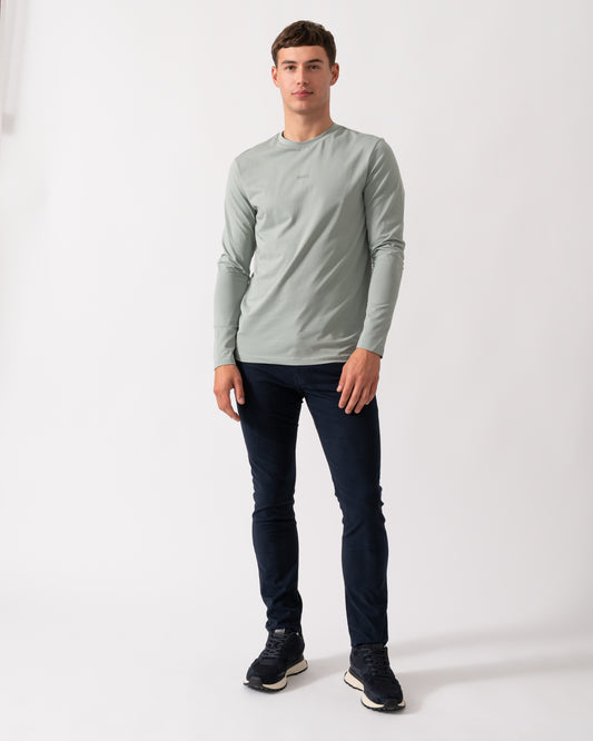 Tchark Mens Long Sleeve Stretch Cotton T-Shirt - Open Green 351