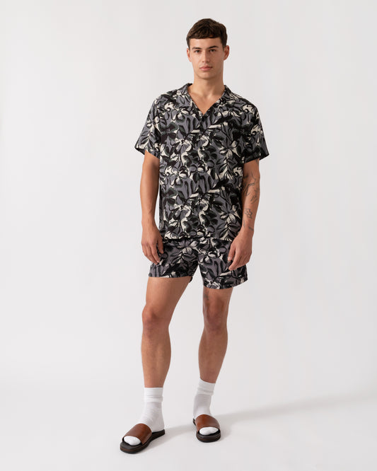 Mens Short Sleeve Floral Print Beach Shirt - Open Grey 062