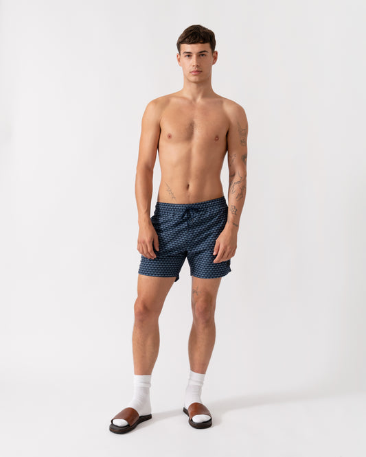 Vibe Mens Logo-Label Swim Shorts with Seasonal Pattern - Navy 414