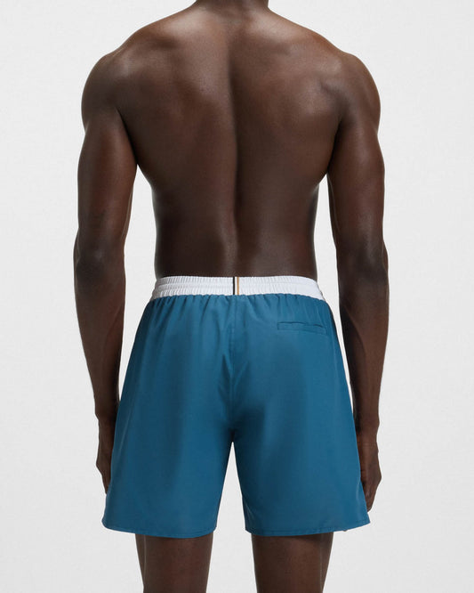 Vendor:BOSS Orange Vibe Mens Logo-Label Swim Shorts with Seasonal Pattern - Light/Pastel Blue 455 - Light/Pastel Blue 455BOSS Orange Vibe Mens Logo-Label Swim Shorts with Seasonal Pattern - Open Blue 483 - Open Blue 483BOSS Orange