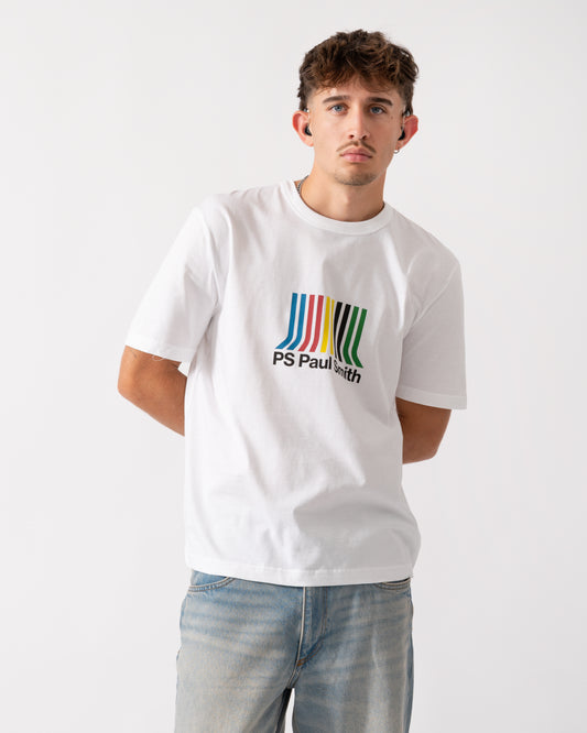 PS Mens Casual Fit Short Sleeve PS Stripe T-Shirt - 01 White