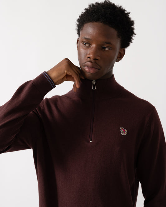 PS Mens Zebra Badge 1/4 Zip Jumper - 29 Very Dark Red